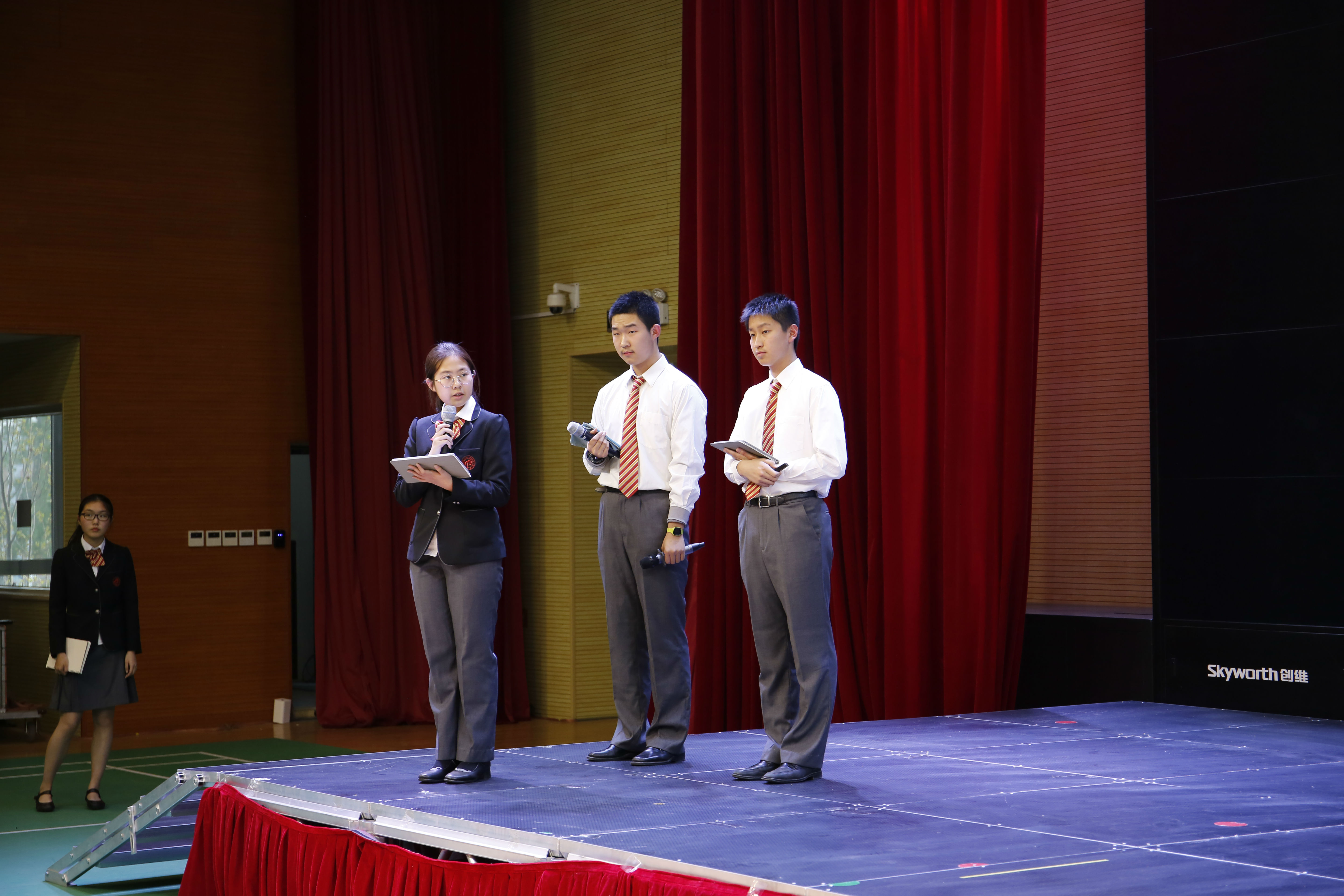 决赛开场前,两位主持人讲解了此次比赛的主题与意义,所谓时事述评便是先述再评,在讲解最近时事热点的同时,加入自己的观点与支撑观点的其他依据,通过多学科的知识素养对于该时事进行评论。在讲解规则的同时,主持人也介绍了在这次活动中北京中学邀请到的评委嘉宾,政治学科专家崔化老师、刘曙光老师、李丽莲老师,他们的评分与建议对于在场每位选手来说都十分珍贵。在舞动人心与慷慨激昂的主持词中,场内的气氛被推到了最高潮,决赛也正式开始。