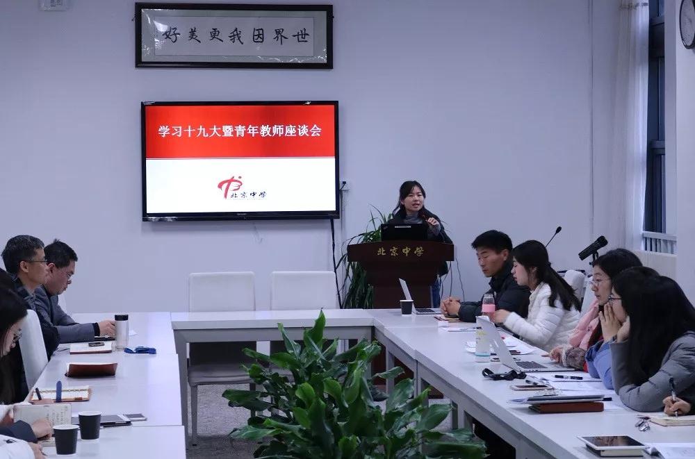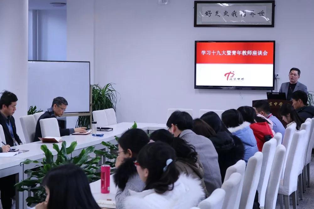 2018年1月11日,北京中学召开“学习十九大暨青年教师座谈会”,学校领导和全体青年教师出席会议。